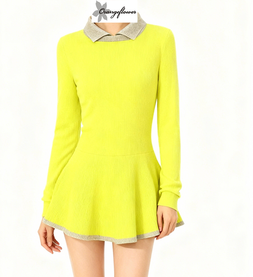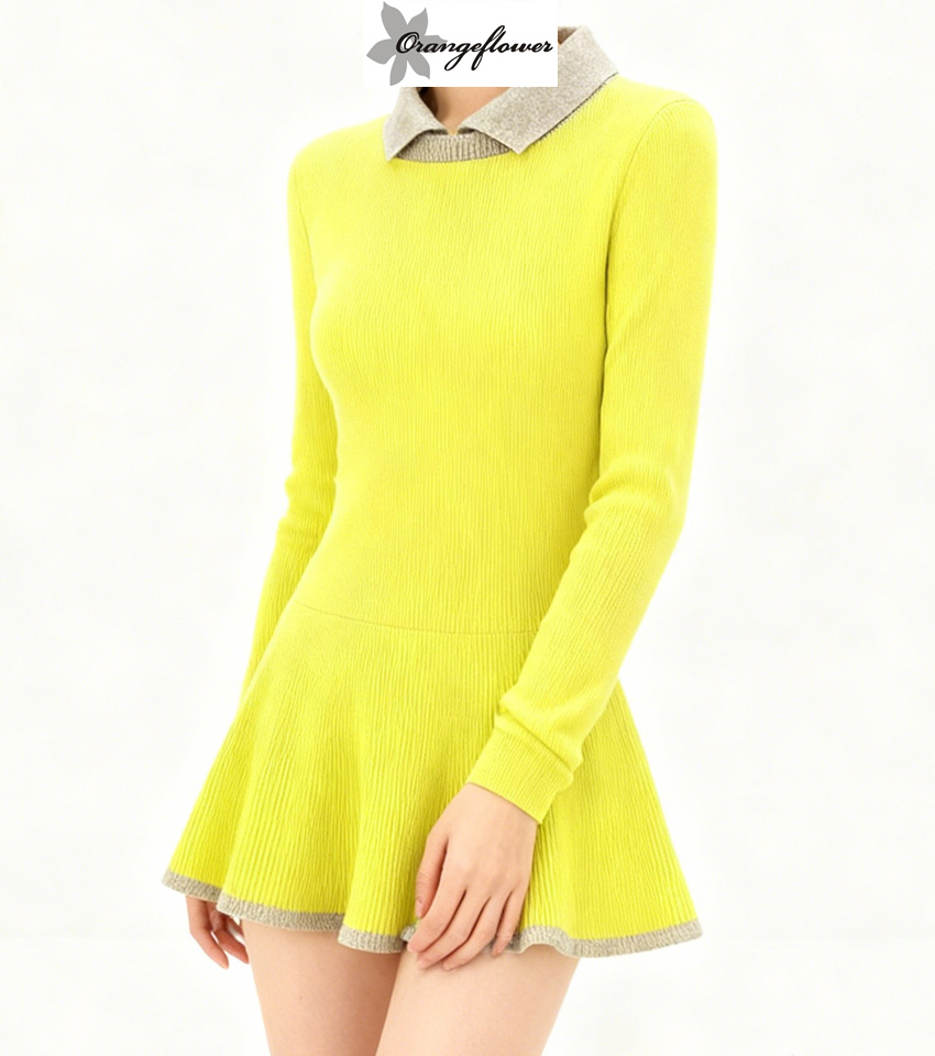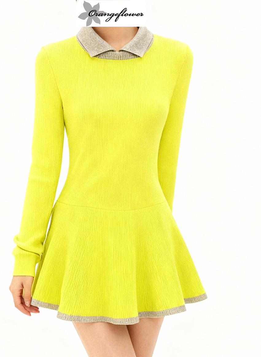 orange flower欧美风针织连衣裙加厚款秋冬修身减龄