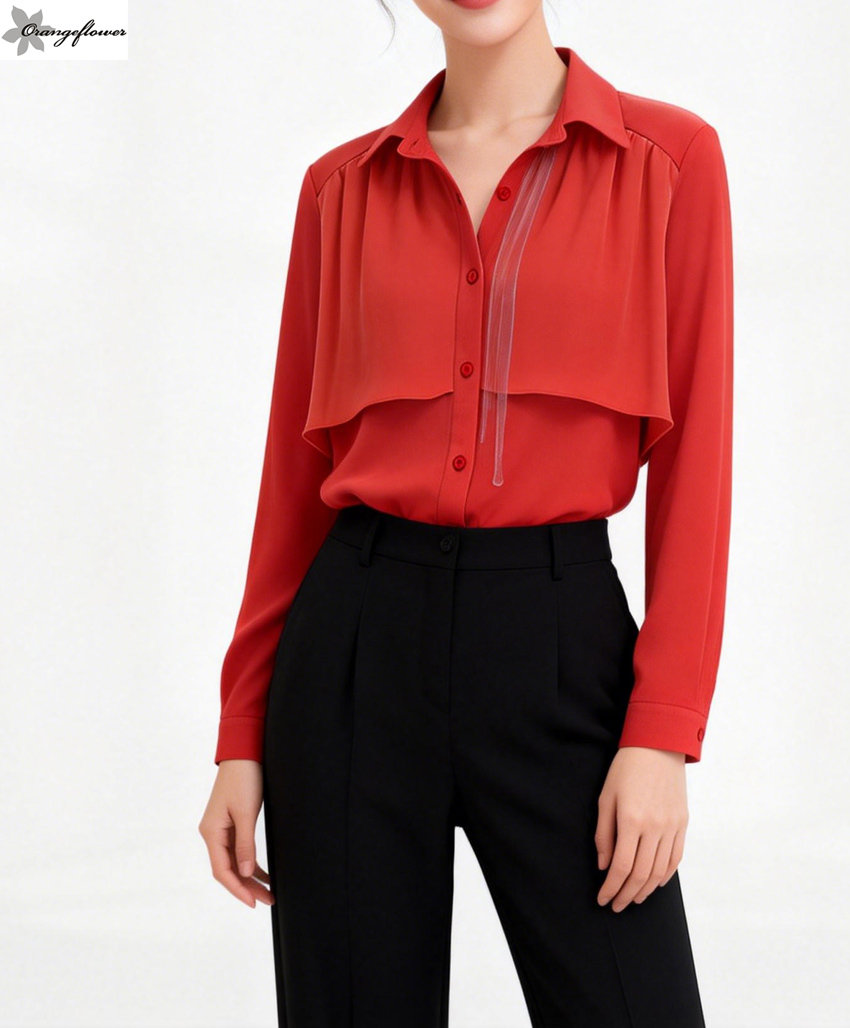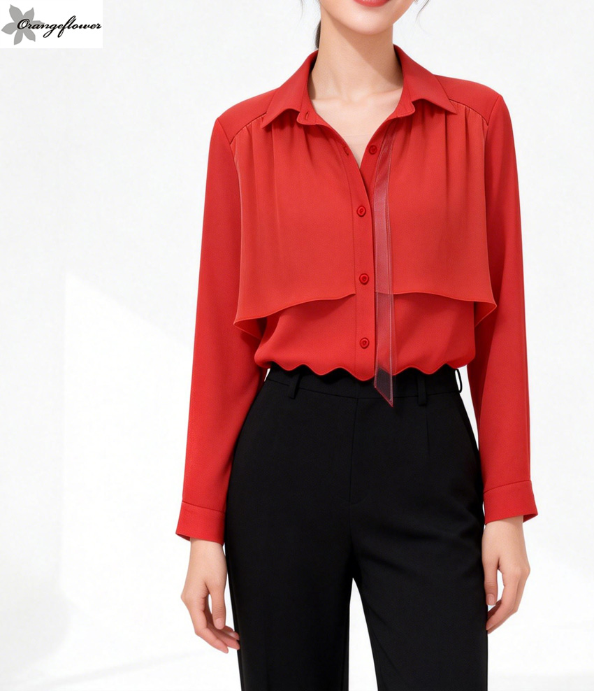 orange flower欧美风格雪纺打底衬衫